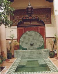 Akşam yemeği için seçimimiz tipik bir Fas 'riyad'ı olan La Douaria restoranı. Riyad, Arapça'da bahçe anlamına gelse de, riyadlar aslında bahçeleri ve avluları çevreliyor. Uzun divanlarda oturarak yiyoruz yemeğimizi. Bu odaların aslında beklenmedik misafirlere yatak odası görevi gördüğünü öğreniyoruz. Bu sefer soframız daha da zengin, Fas mezeleri, Tagine'in 4 çeşidi, kuskus ve nane çayı finali. Tagine Makhfoul denenmesi şart bir yemek. Dan-sözlü, darbukalı bir yemek sonrası durağımız ise Jad Mahal. Marakeş'in görülmesi gereken mekanlarından Jad Mahal, geleneksel Fas dekorasyonunun en iyi örneği. Tavandaki aynalar ve binlerce renkli işlemeler, görkemli avizeler, üzerine ay düşen havuzuyla etkilenilmeyecek gibi değil.